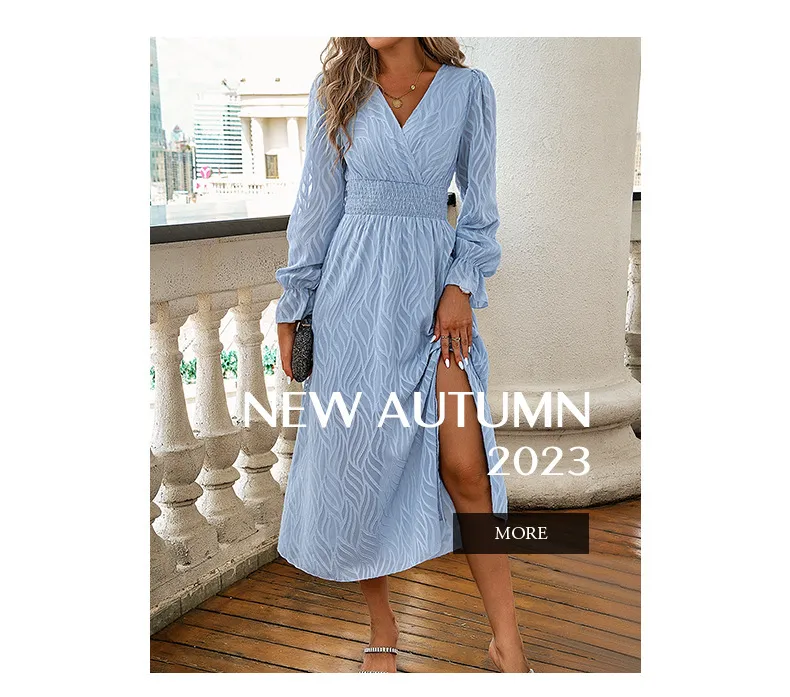 This dress features a jacquard design that adds texture and three-dimensionality to the outfit. The loose long-sleeved design is both comfortable and stylish, covering the fat on the arms. The overall style is elegant and generous, suitable for all occasions.